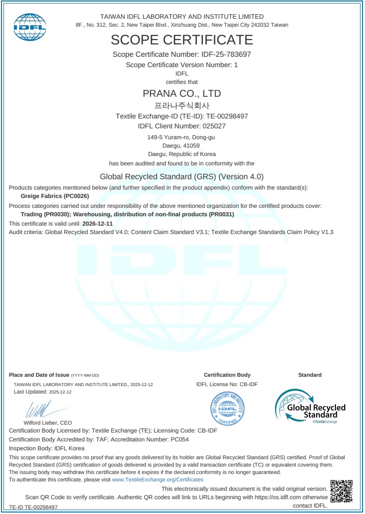 국내 유일 아웃도어 패브릭 프라나주식회사